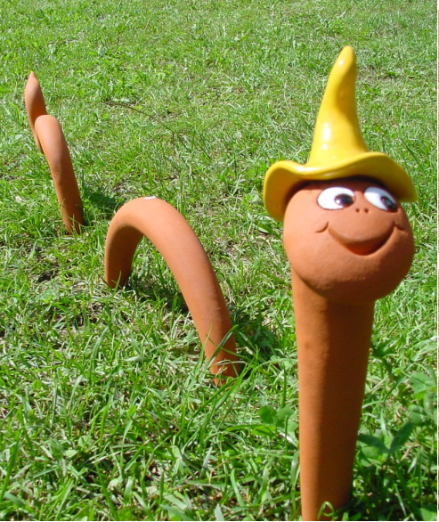Unsere selbstgefertigten Produkte umfassen, angefangen bei Pflanzen- und Kräuterschilder, über dekorative Ausstellungsstücke, wie lustige Würmer, spaßige Vögel und anderen Tierchen, Lichtobjekte bis zu bepflanzten und unbepflanzten Gartenkugeln.
